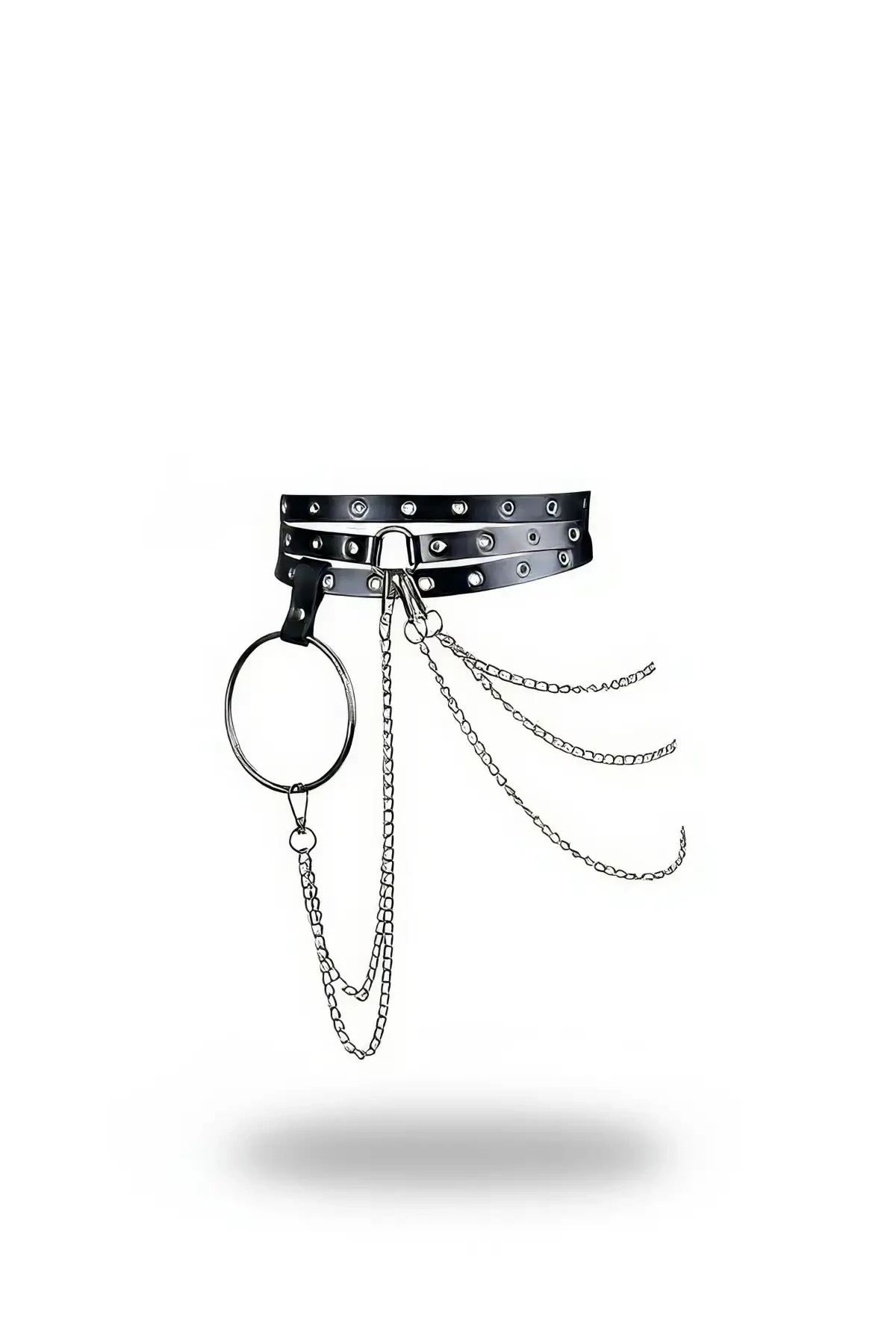 Siyah Kadın Kemer Zincir Detaylı Halka Tokalı Zımbalı Bel Aksesuarı - APFT731